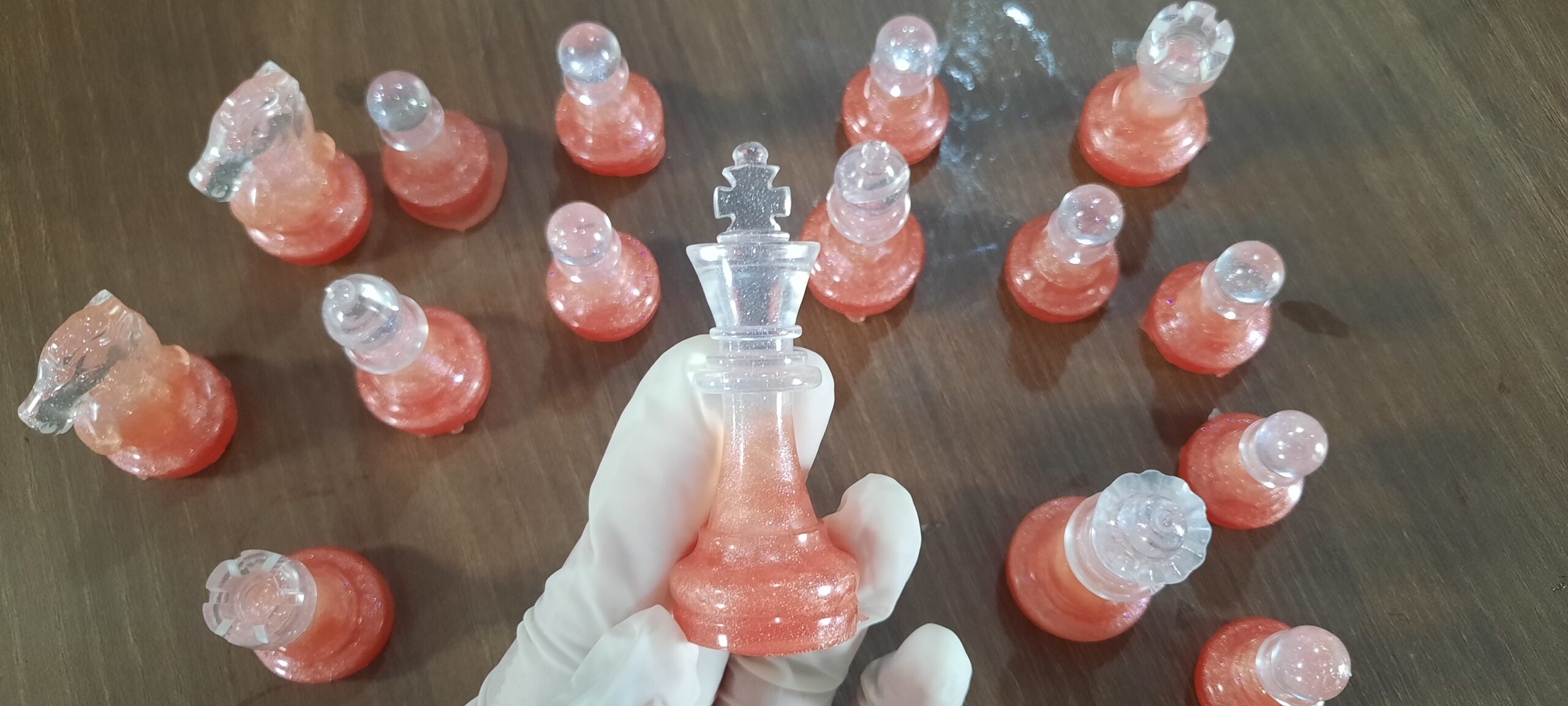 Bộ Quân Cờ Vua – Màu Cam Đào – Handcrafted resin chess pieces set