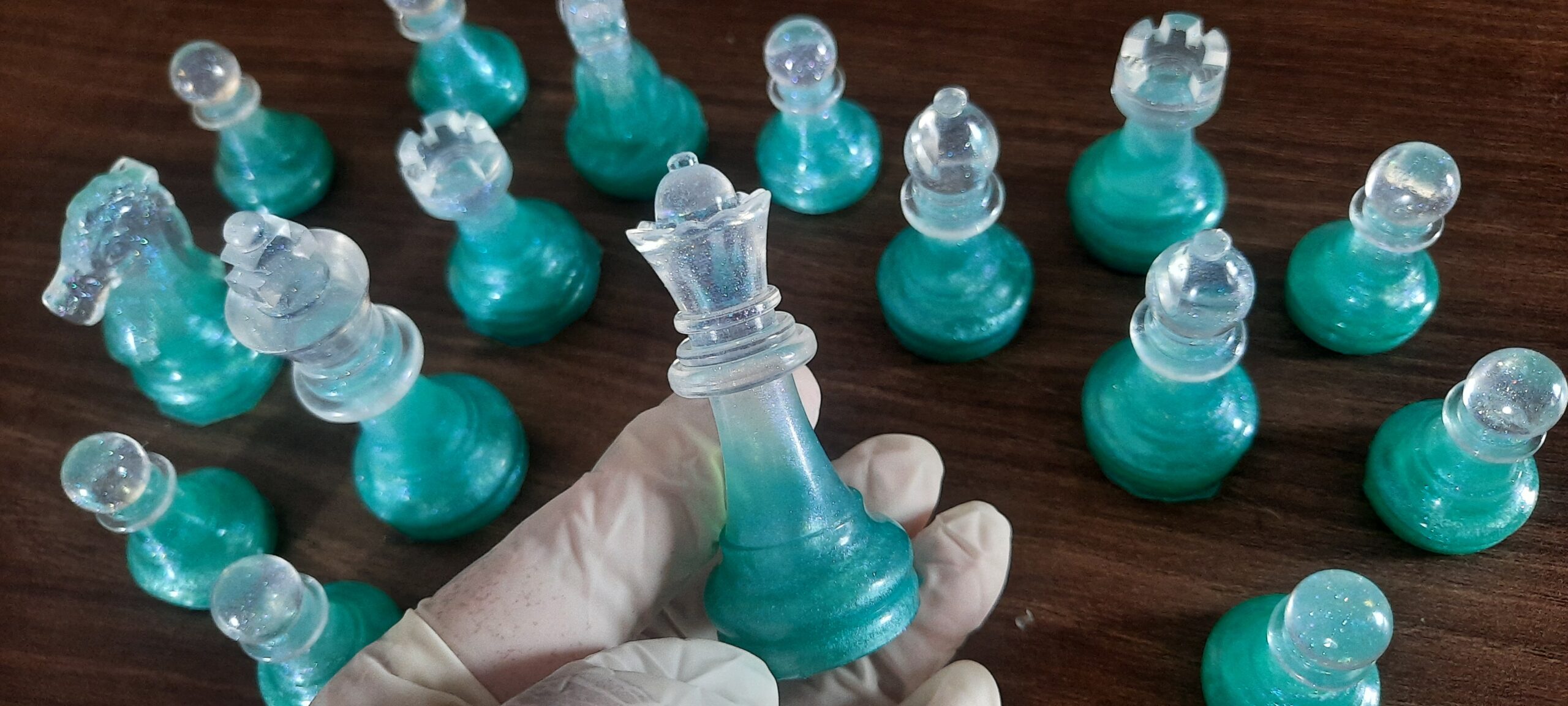 Bộ Quân Cờ Vua – Màu Xanh Ngọc – Handcrafted resin chess pieces set